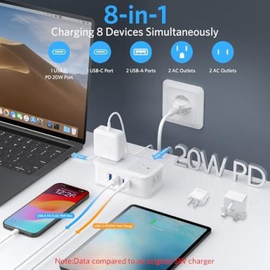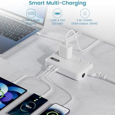BESTEK European Travel Plug Adapter: – 4 Outlets 4 USB Ports (2 USB C) with 3.6FT Wrapped Short Extension Cord, Small Portable Desktop Charging Station, Compact for Hotel Travel Cruise Essentials